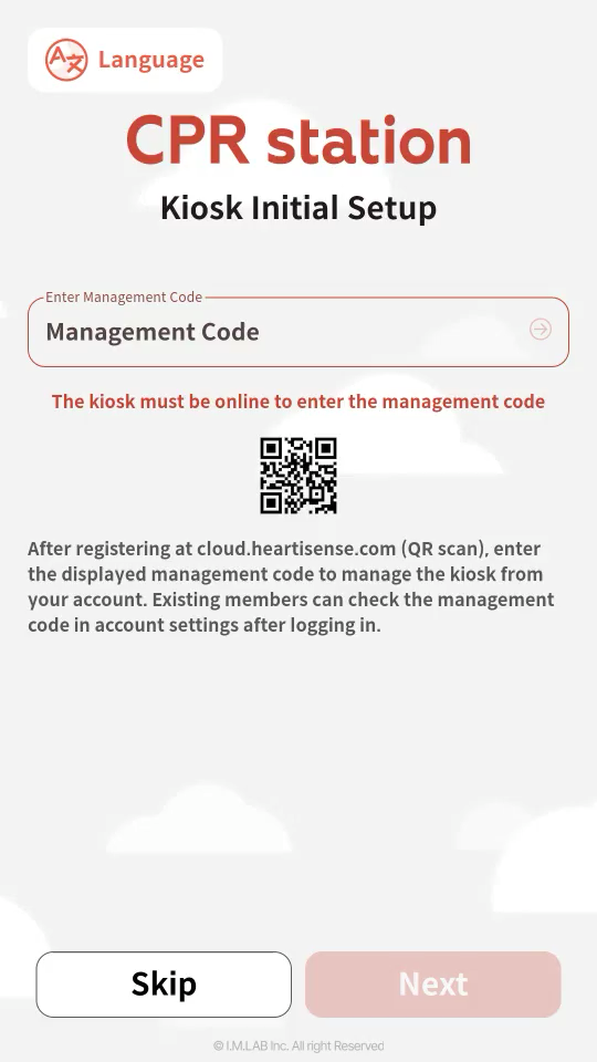 ⚠️ CPR cloud로 온라인 클라우드 및 원격 관리 서비스를 활용하려면 contact@imlabworld.com 로 문의하십시오. 이 코드는 활성화 코드와 별개입니다.