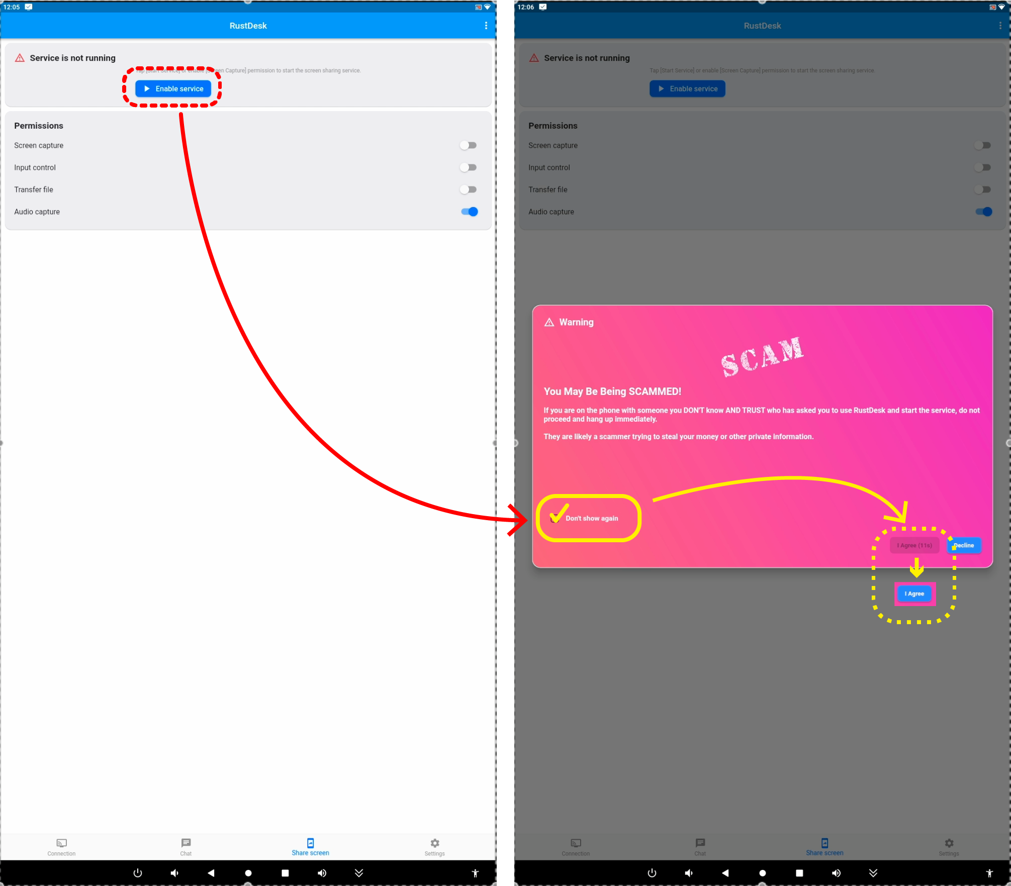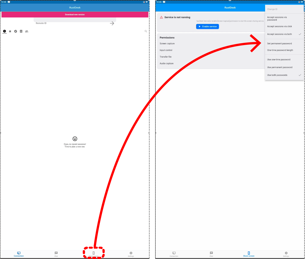 ⚠️ RustDesk앱을 실행했을때 상단에 표시되는 Download New Version 버튼을 누르거나 최신버전으로 업데이트하지 마세요.