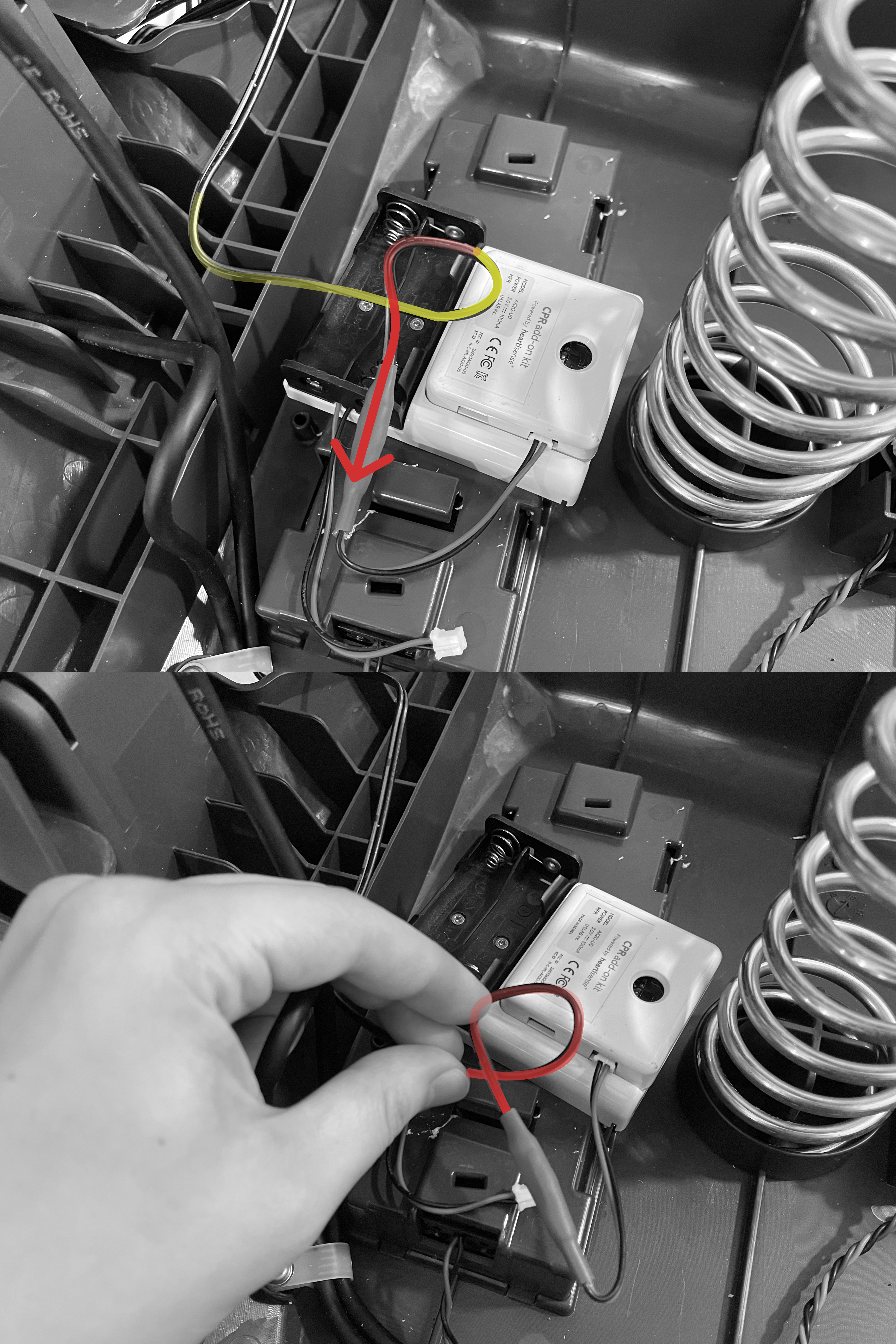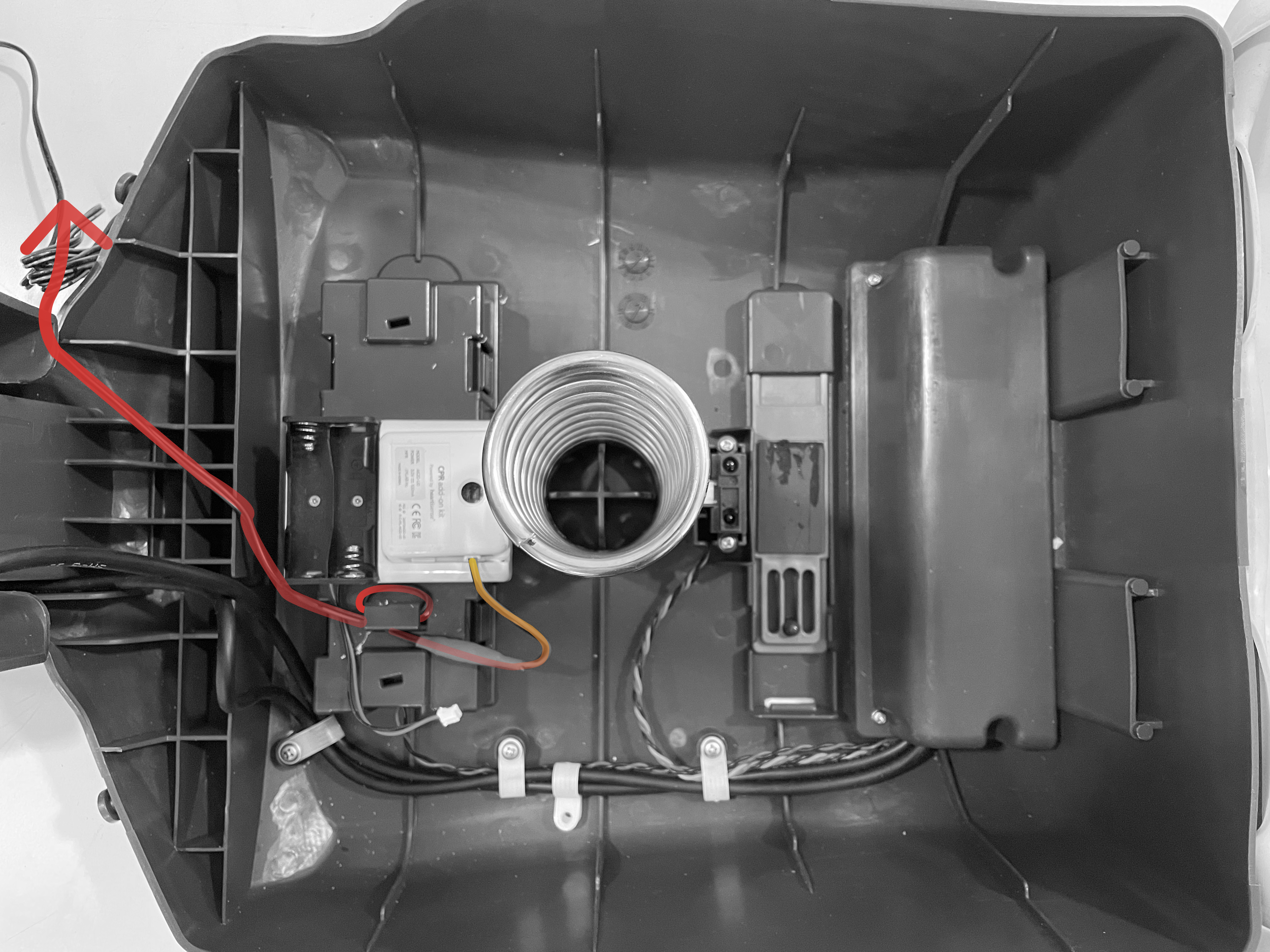 ⑤ 어댑터쪽 선을 마네킹 우측 밖으로 빼냅니다.