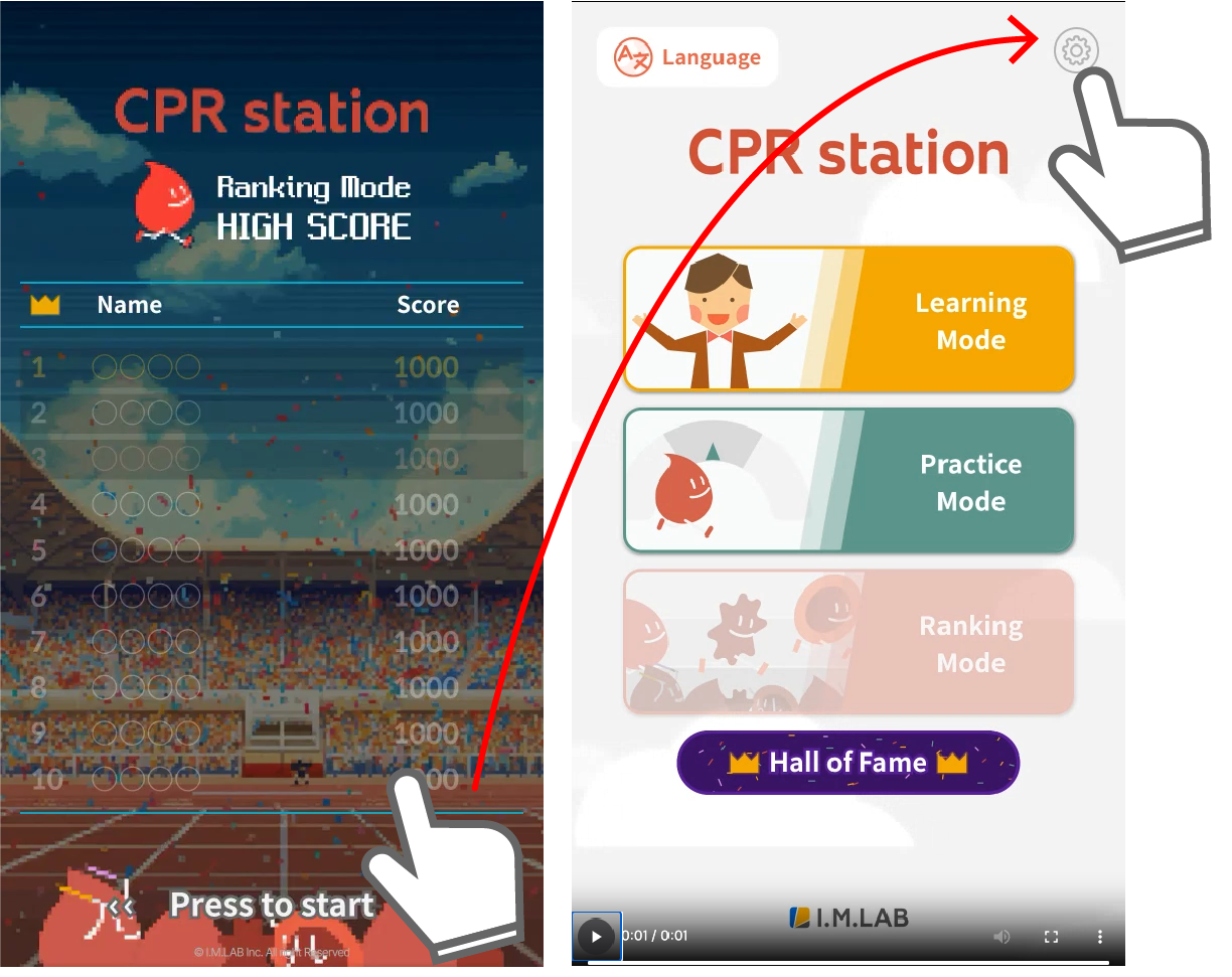 ① 대기화면(명예의 전당)에서 아무 곳이나 누르십시오.