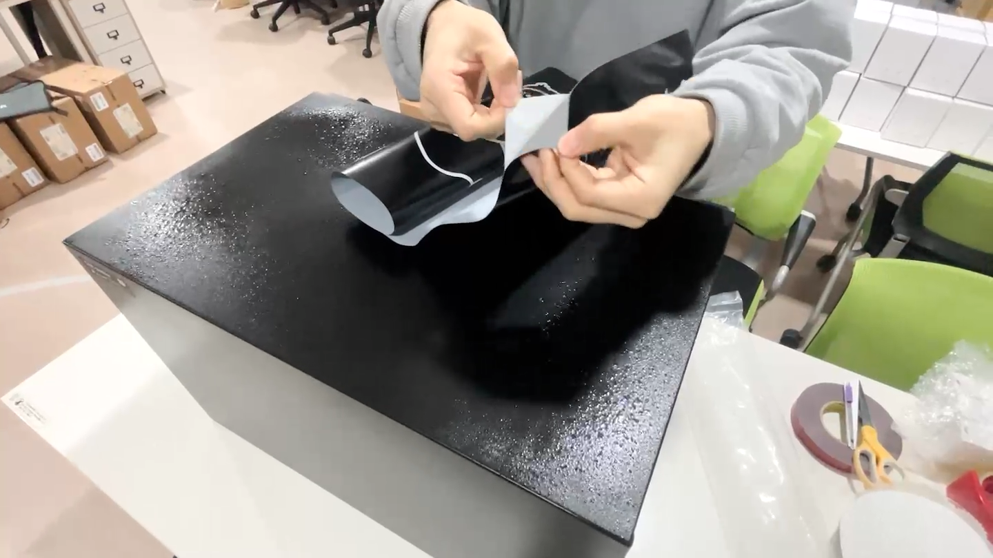 - 시트지의 이형지를 완전히 벗겨냅니다.